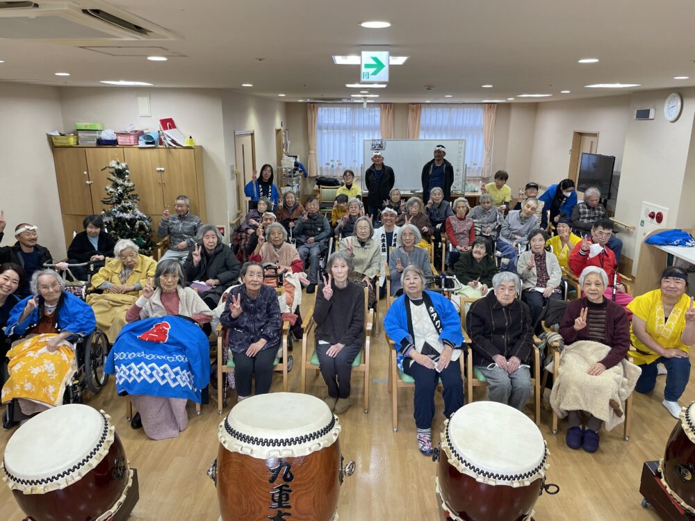 ハートライフ初生では、10周年記念イベント第3弾と題し、12月17日に九重太鼓愛好会の皆様をお招きして、寒さも吹っ飛ぶ力強い太鼓パフォーマンスを披露していただきました。