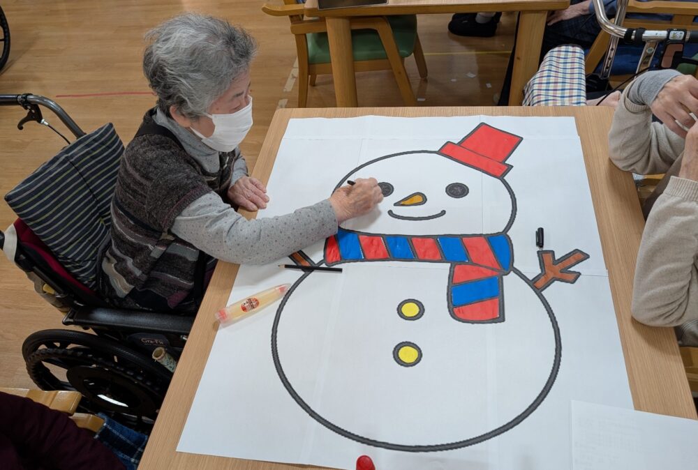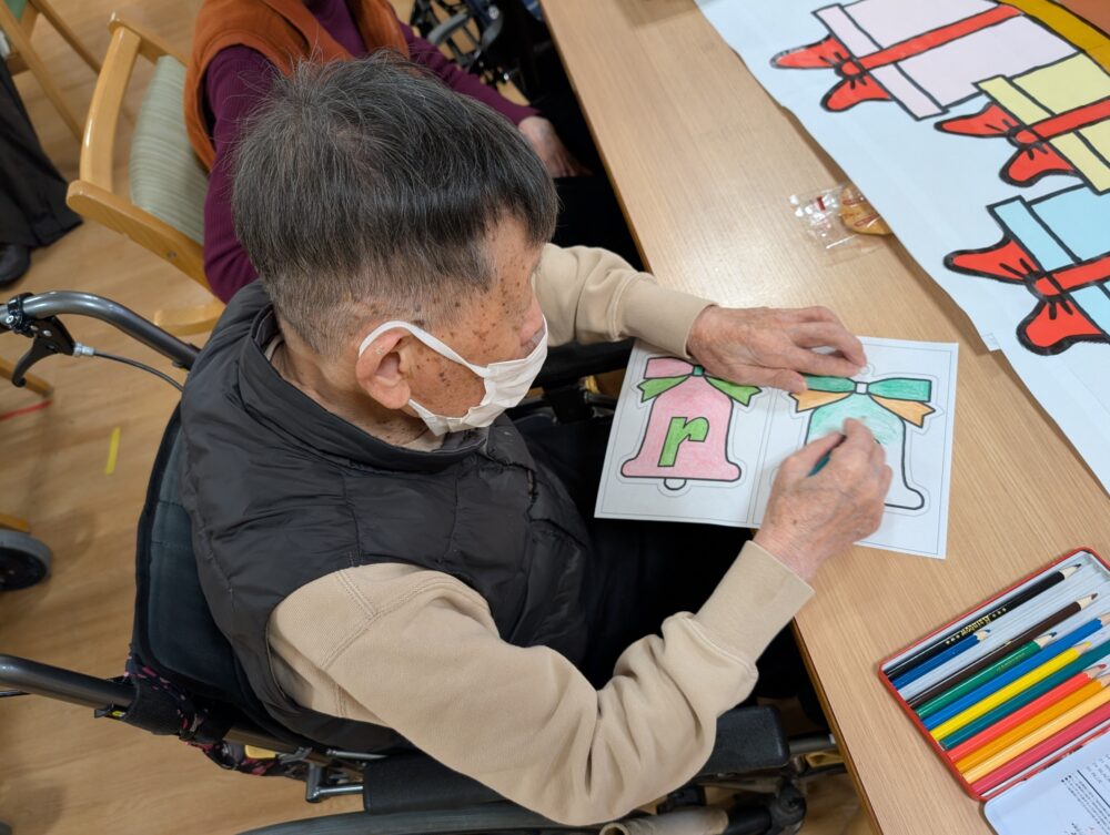 生活リハビリの一環としてお客様に飾り付け作りをスタッフと一緒に行っていただきました。作業しながら「かわいいわね」や「今年はどんなことをしてくれるの?」など楽しみにして下さる声をたくさんいただきました。