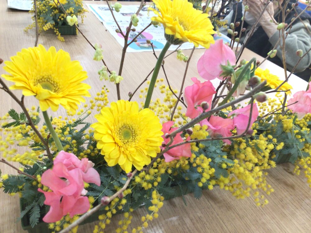 黄色やピンクの明るい花々に囲まれた明るい雰囲気の中、一つ一つ個性が溢れる素敵な作品が完成しました。