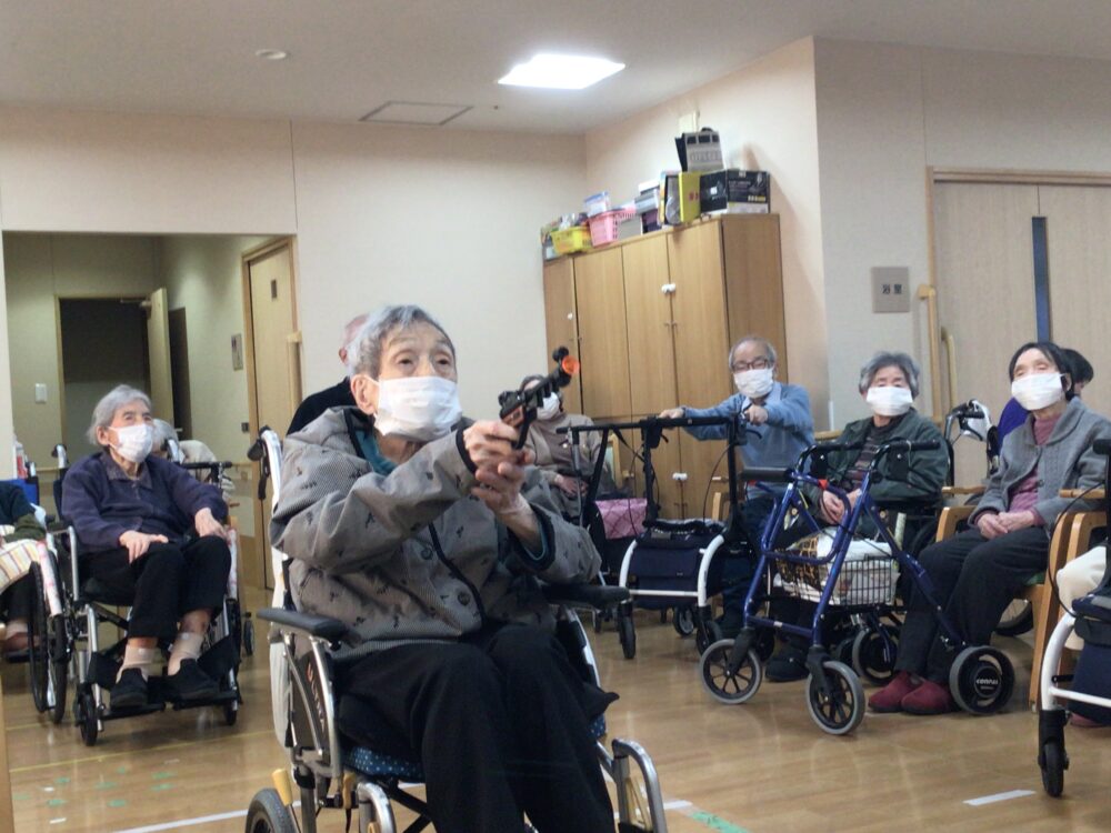 思うように的に当たらず、中々難しさもあるゲームですが、上手くいくと、「当たった!」「今のすごい!」と歓声が上がり、自然と周囲から拍手が上がるなど、楽しみながら取り組む中で、心身の活性化にも繋がる時間を過ごす事ができました。