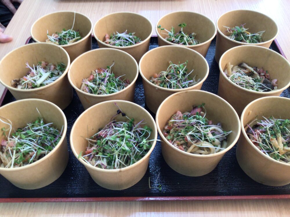 お客様にも具材(ベーコン・舞茸・ブロッコリースプラウト)のカットや炒める作業にご参加して頂きました。役割を持って取り組まれる事で、より一体感のある時間となり、楽しみながらご参加頂くことが出来ました。