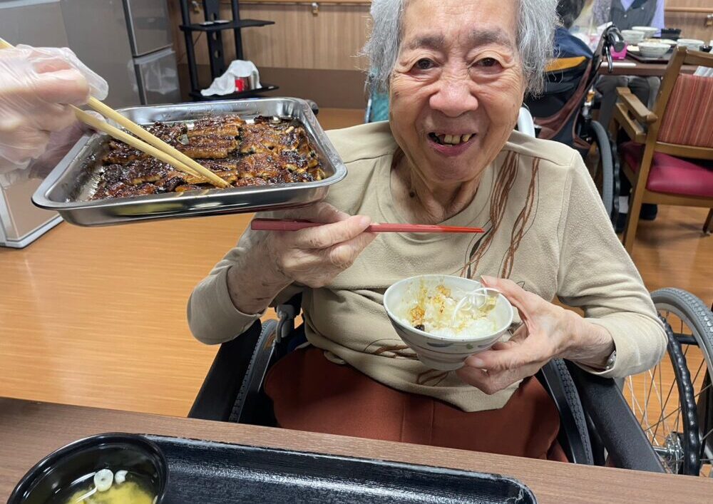 7月には土用の丑の日があります。鰻を食べて夏バテを予防して元気に過ごしていただけるよう「ひつまぶし」を提供しました。薬味やお出汁もご用意して3通りの食べ方を楽しんでいただきました。今後も、お客様が五感に触れ、楽しめる食事企画を提供させていただきます。