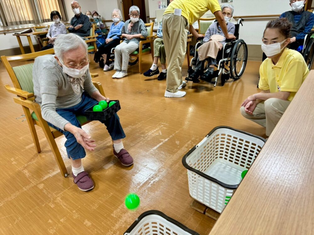ハートライフ小石川9月のおもてなしは、旬のマスカットを使ったケーキを皆様に提供させていただきました。また、食べる前にはマスカットに見立てたボールをかごに投げ入れていただき、収穫する様子に見立てたレクリエーションにも参加していただいたので、その時の様子をご紹介します。