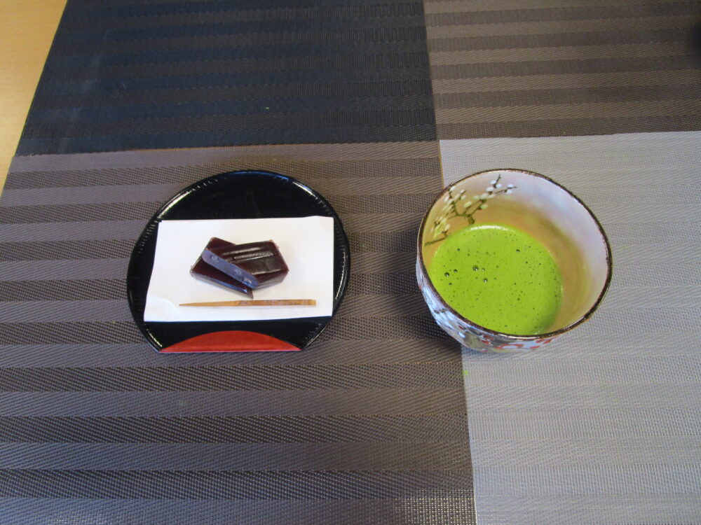 お茶の道具一式を持ち、休日には茶道をたしなんでいる看護師の協力のもと、日本の「和の心」を感じていただくひとときをご用意しました。