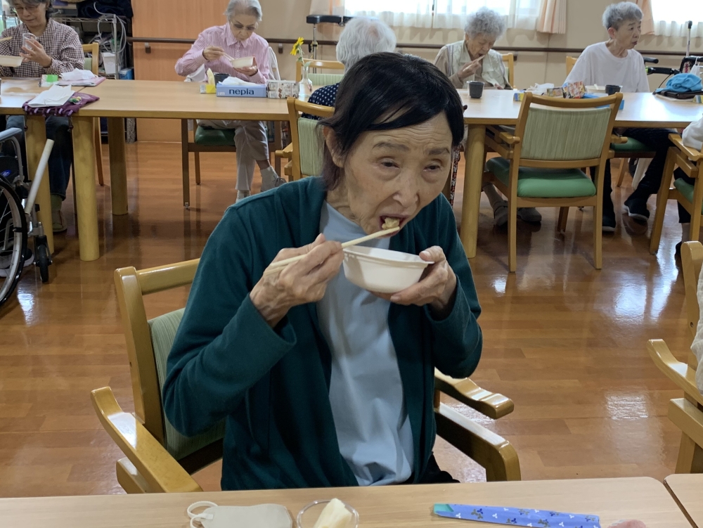 今回の行事食では、お客様に「秋を感じるご当地グルメ」を楽しんでいただき、食を通じて会話や交流が広がるひとときとなりました。