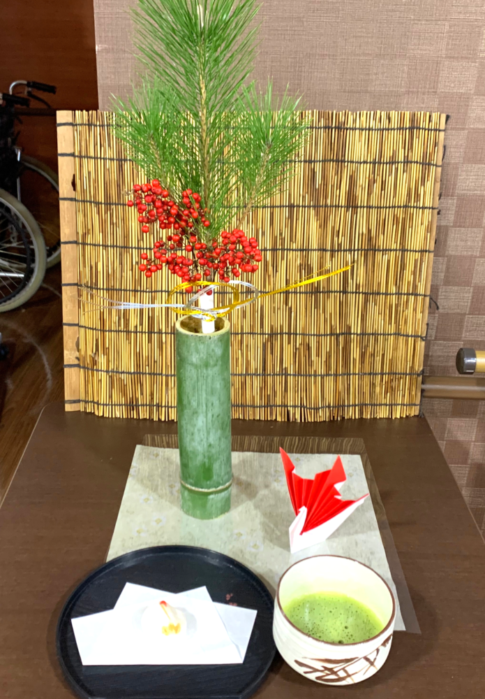 90代女性「若松や南天、鶴の飾りを眺めながらお茶をいただく時間がすごく落ち着きました。」