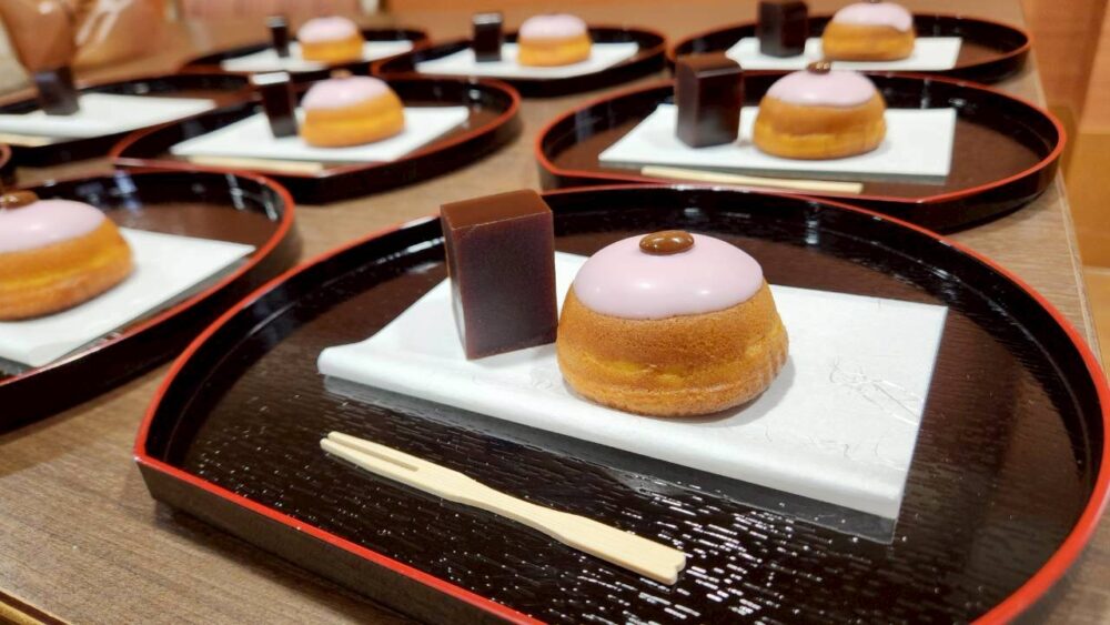 お菓子とお茶菓子を添えてお抹茶を提供させていただきました。