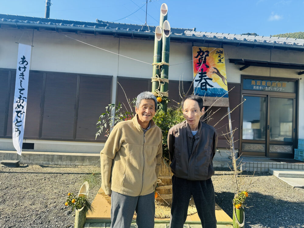 押切八幡神社に元旦に初詣に行くのは今年で8年目となります。また、3年前から初詣の後、鳥坂自治会館での大門松での記念写真も始めています。お客様にたいへん喜んでいただいて最高の元旦でした。