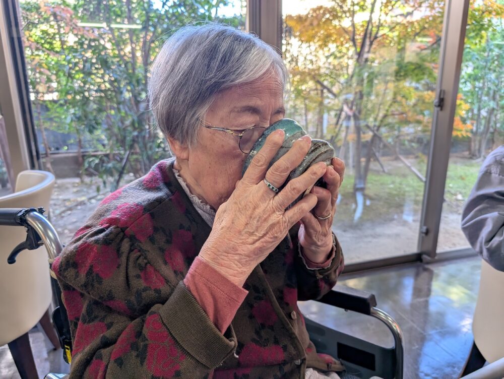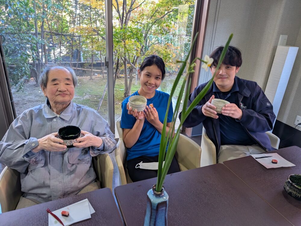 秋から冬へと季節は流れプレミアムハートライフ大岩から見る木々も茜色の葉を落とし冬の景色に変わろうとしています。朝夕の冷たい空気が頬に触れる日が増え、改めて年の瀬を感じるようになりました。季節ごとに行っている抹茶を愉しむ会を通してご利用者様には季節の移り変わりを五感で楽しんでいただきたいと思います。またご利用者様同士の交流の機会としても満足していただけるよう職員一同で取り組んでいきたいと思います。