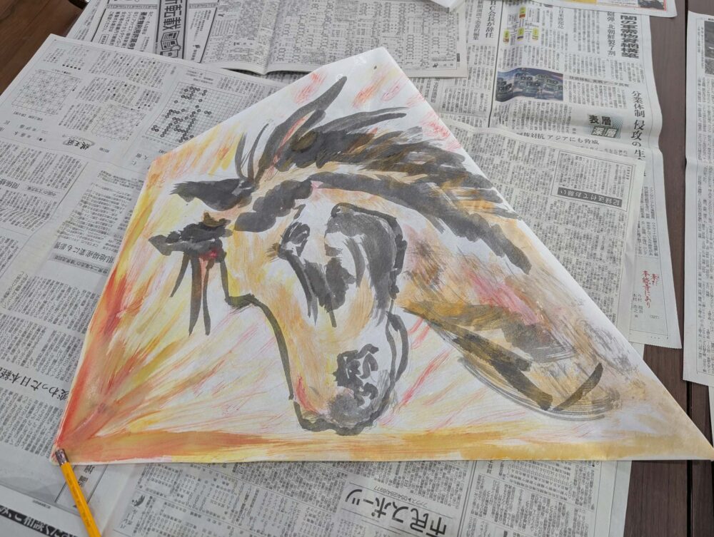 絵付けの後に竹ひごで骨を組んで完成となりました。