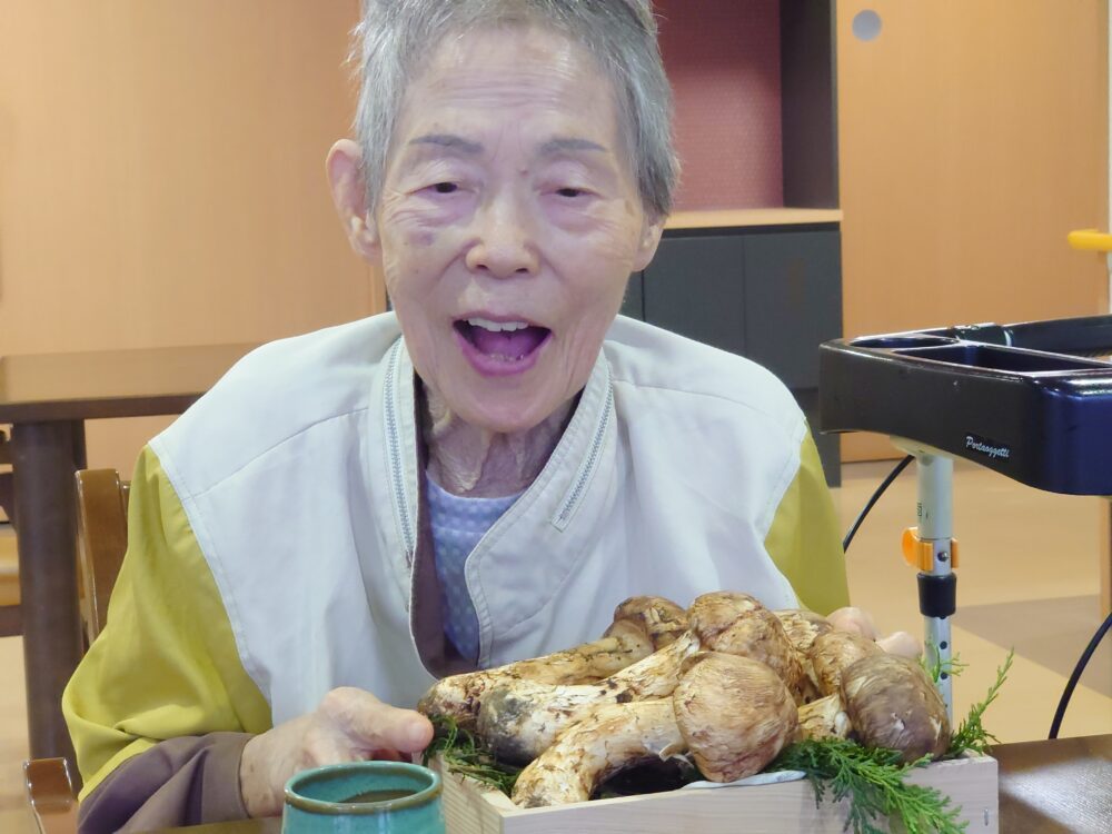 松茸が施設に届きました。皆さまに実物をご覧いただきました。その美しさと香りに感嘆の声が聞こえました。秋の節間を存分に感じていただけたのではないでしょうか。