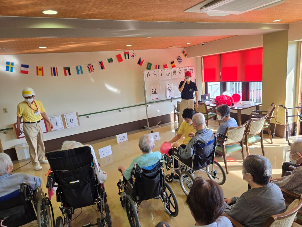 プレミアムハートライフ小鹿公園前では、10月13日のスポーツの日に「運動会レクリエーション」を開催いたしました。紅組と白組に分かれ、お客様には職員が工夫を凝らした3つの競技にチームで挑戦していただき、楽しいひとときをお過ごしいただきました。安全に配慮しながら、皆さまの笑顔があふれる素敵なイベントとなりました。