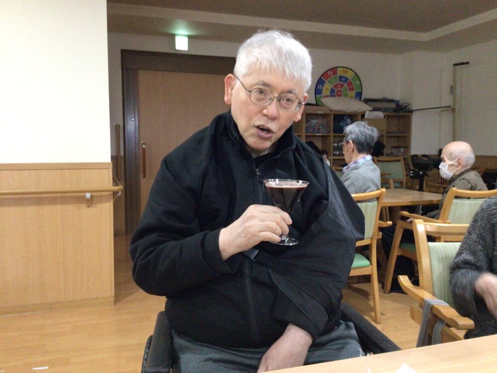 ハートライフ高柳では、定期的に食事イベントを開催しております。 2月は「バー」をテーマにしたレクリエーションを実施いたしました。会場はいつものデイフロアとは雰囲気を変え、落ち着いた音楽とともに、ノンアルコールカクテルや色鮮やかなドリンクをご用意。お好きな飲み物を選んでいただき、まるで本物のバーにいるかのような特別な空間をお楽しみいただきました。